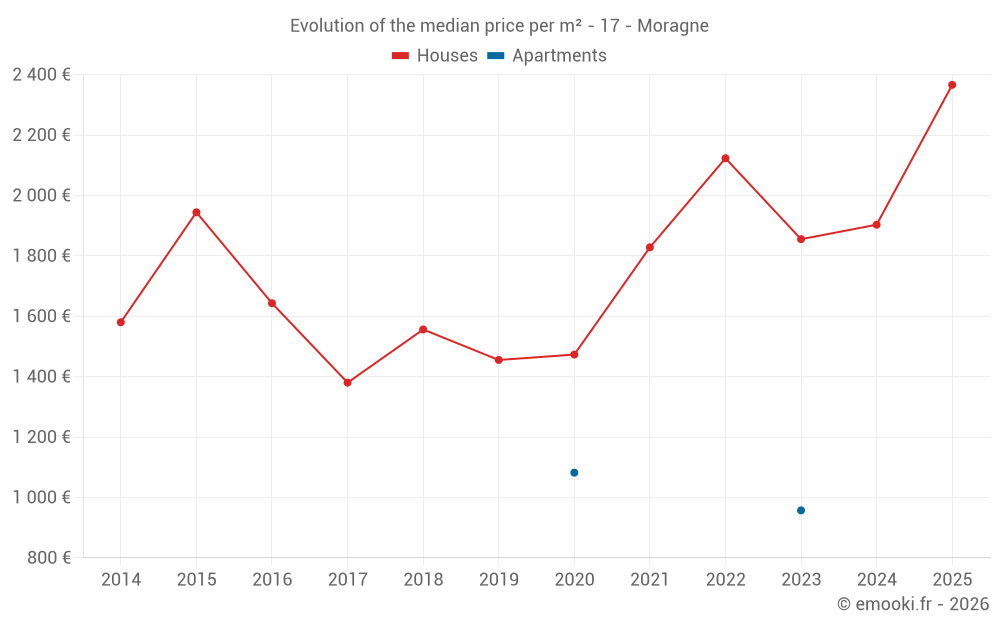 Real estate price map in the municipality of Moragne, choose a section to see transactions by parcel.