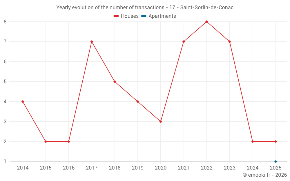 Real estate price map in the municipality of Saint-Sorlin-de-Conac, choose a section to see transactions by parcel.
