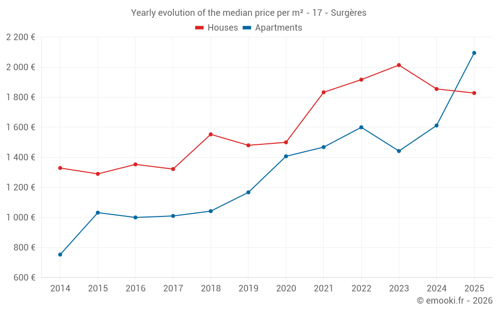 What is the price per m2 of apartments in Surgères?