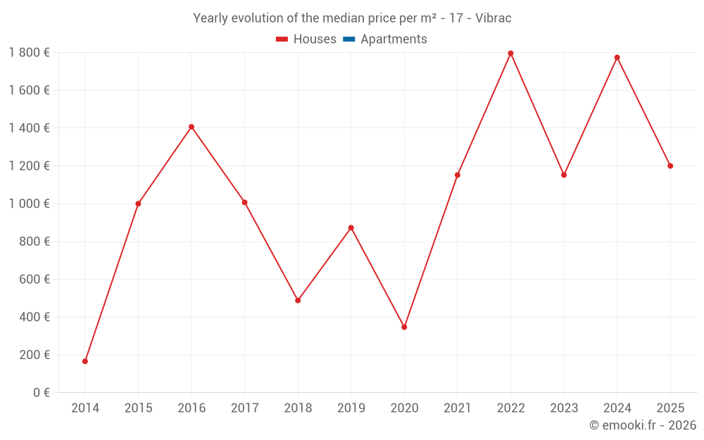 Evolution of the median price per m² of houses