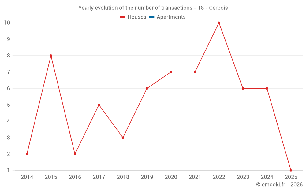 Real estate price map in the municipality of Cerbois, choose a section to see transactions by parcel.