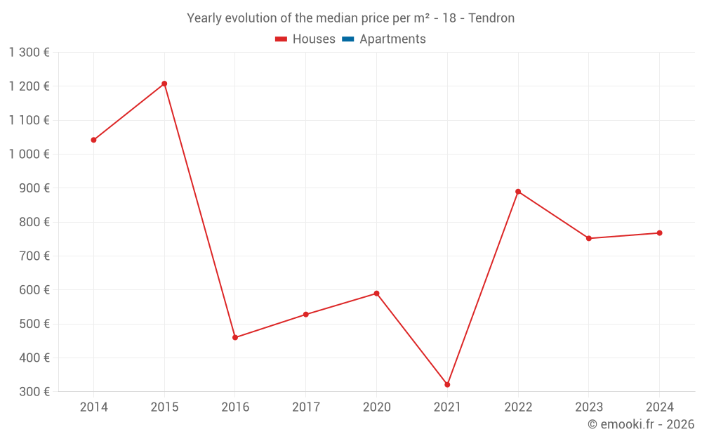 Real estate price map in the municipality of Tendron, choose a section to see transactions by parcel.