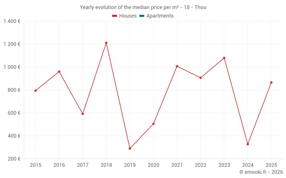 Evolution of the median price per m² of houses