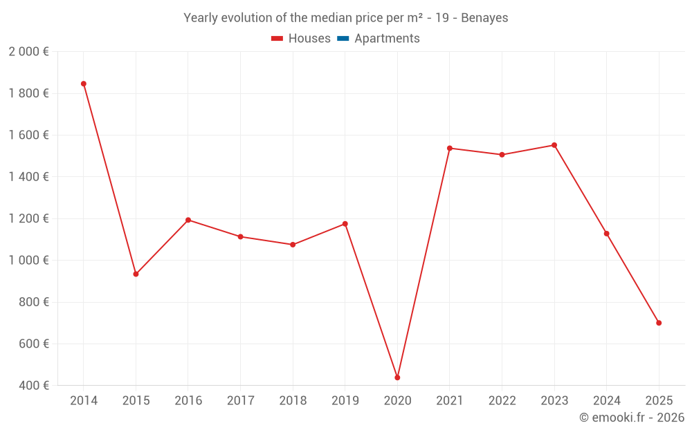 Evolution of the median price per m² of houses