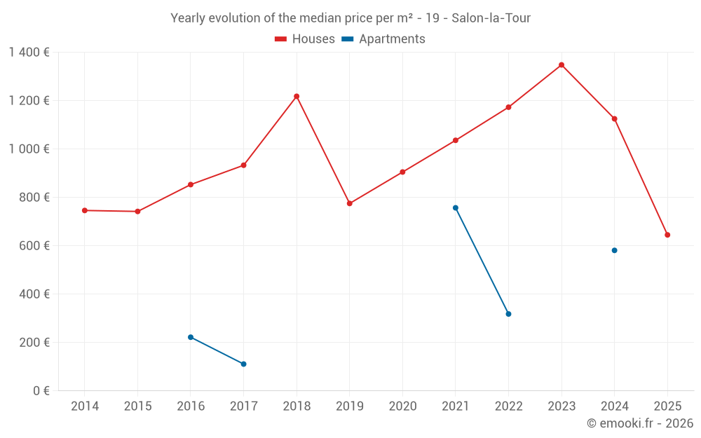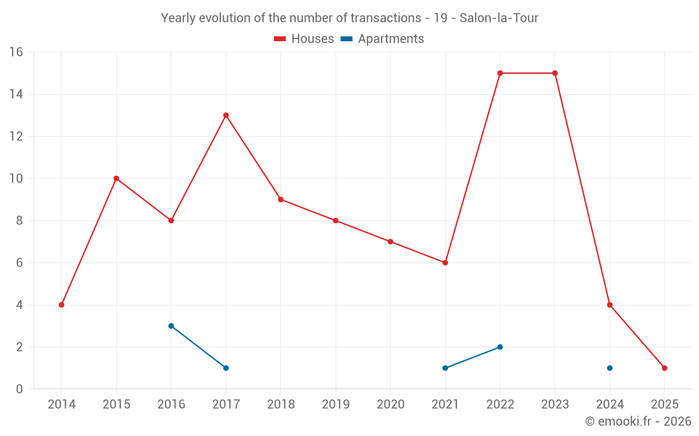 Real estate price map in the municipality of Salon-la-Tour, choose a section to see transactions by parcel.