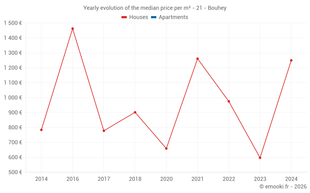 Evolution of the median price per m² of houses