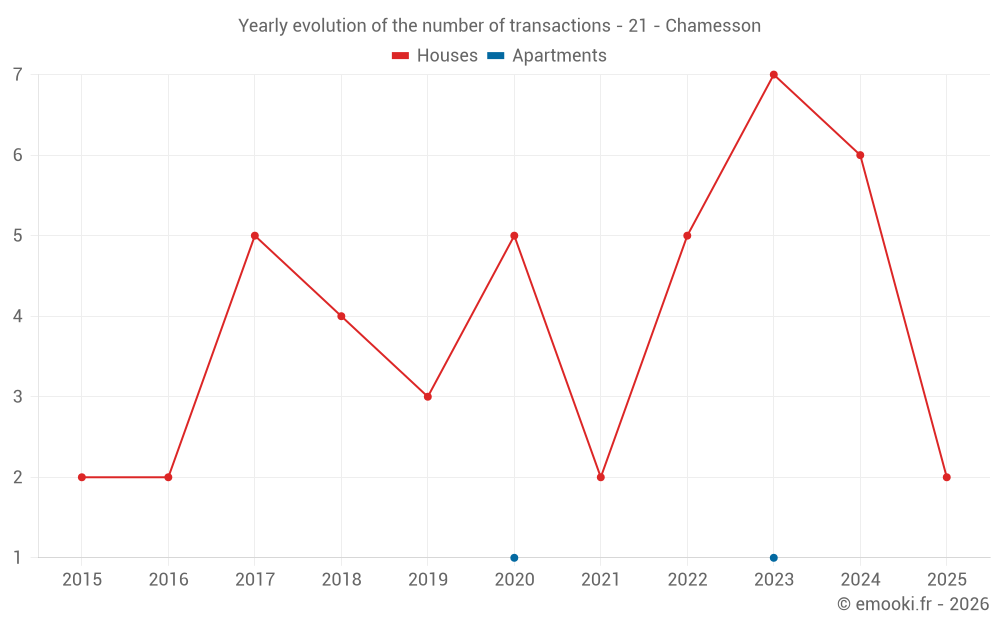 Real estate price map in the municipality of Chamesson, choose a section to see transactions by parcel.