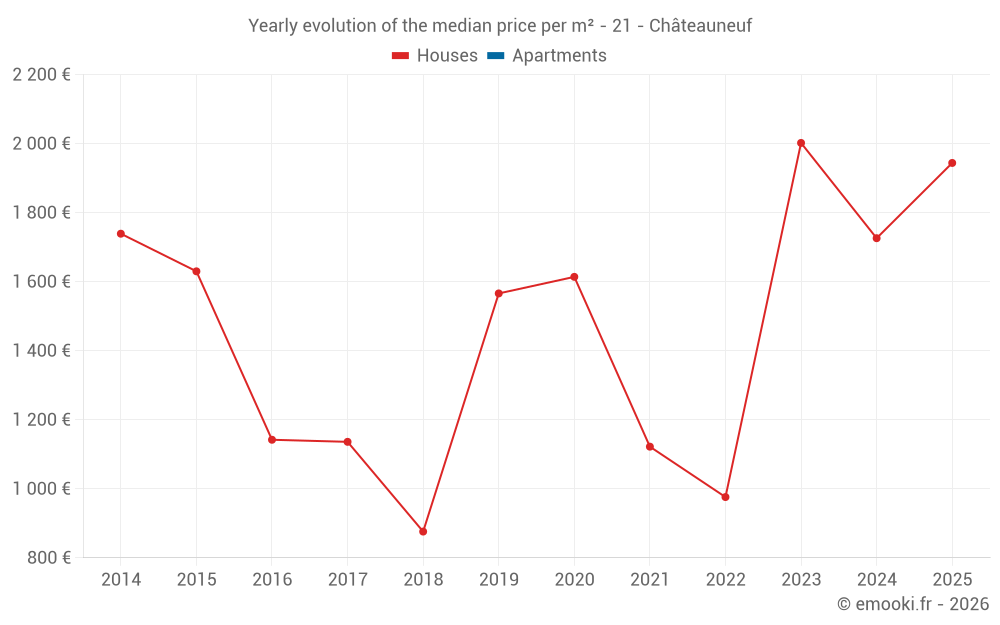 Evolution of the median price per m² of apartments