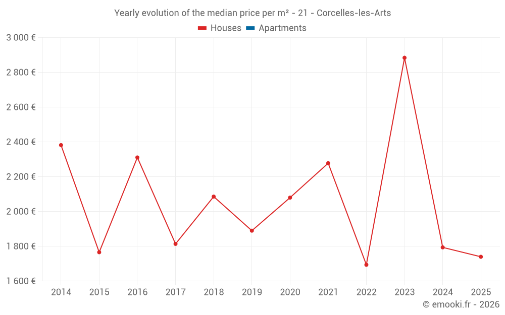 Real estate price map in the municipality of Corcelles-les-Arts, choose a section to see transactions by parcel.