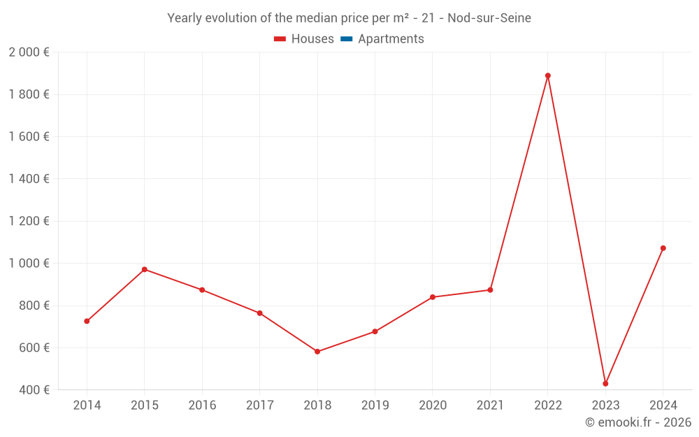 Real estate price map in the municipality of Nod-sur-Seine, choose a section to see transactions by parcel.