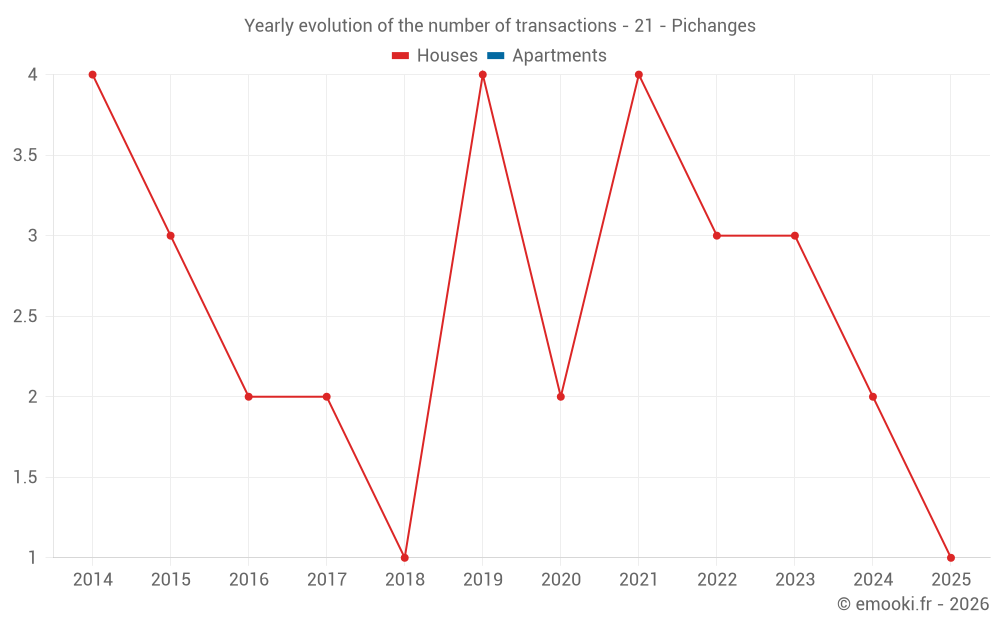Real estate price map in the municipality of Pichanges, choose a section to see transactions by parcel.