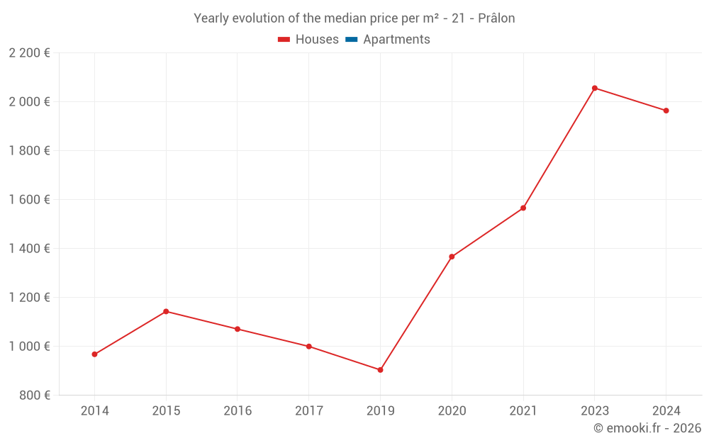 Evolution of the median price per m² of houses