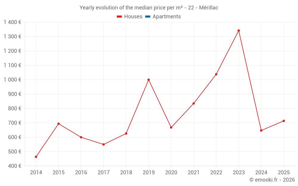 Evolution of the median price per m² of houses