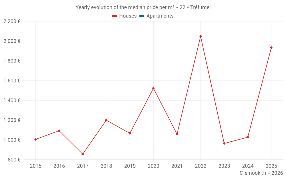 Evolution of the median price per m² of houses