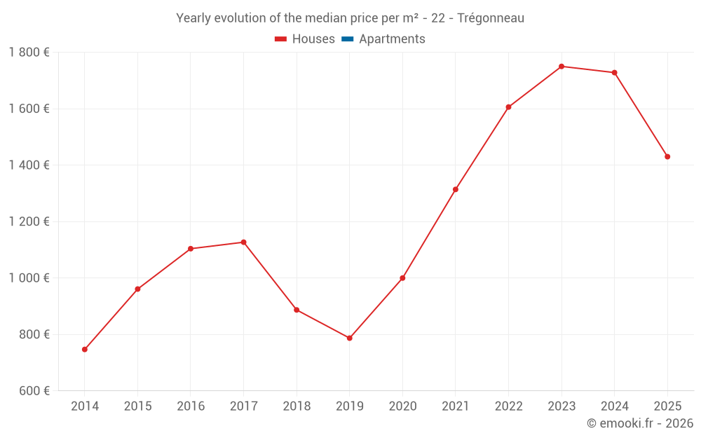 Evolution of the median price per m² of houses