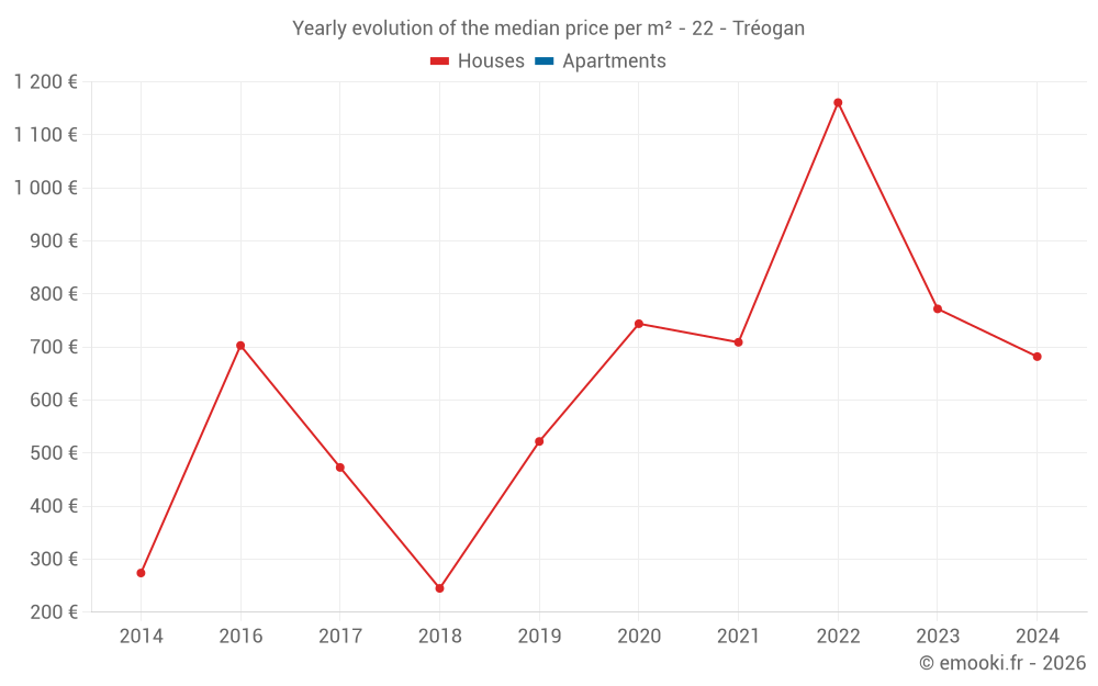 Real estate price map in the municipality of Tréogan, choose a section to see transactions by parcel.