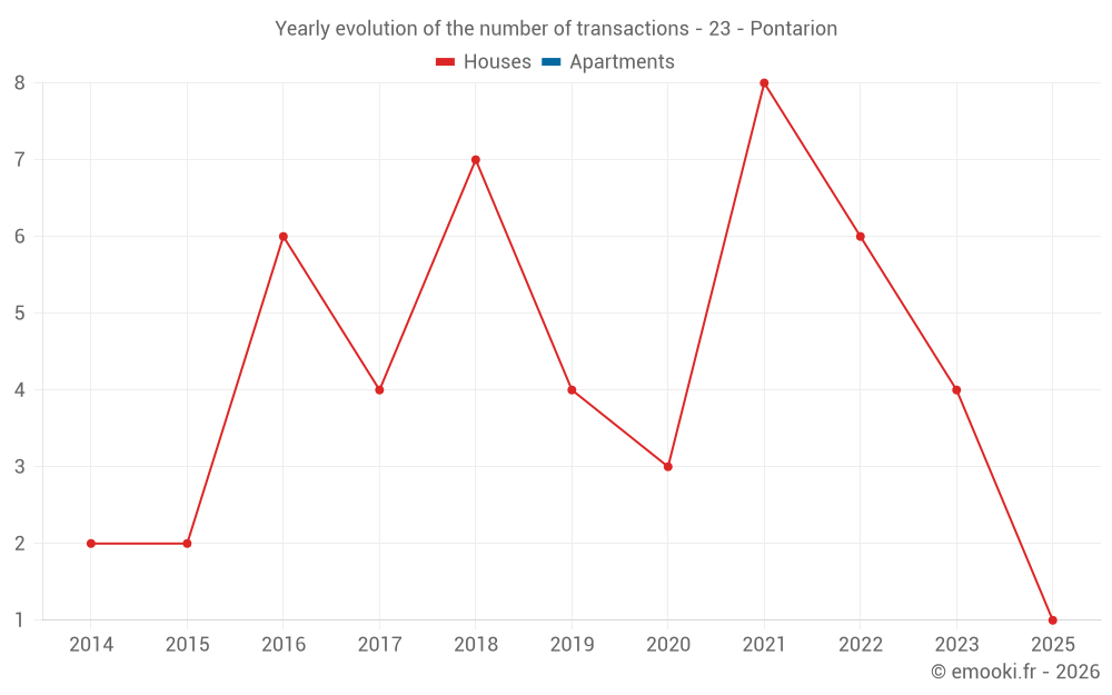 Real estate price map in the municipality of Pontarion, choose a section to see transactions by parcel.
