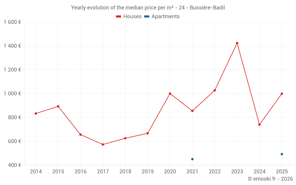 What is the price per m2 of houses in Bussière-Badil?