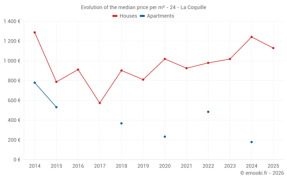 Median price on the 23 transactions of the last 12 months.