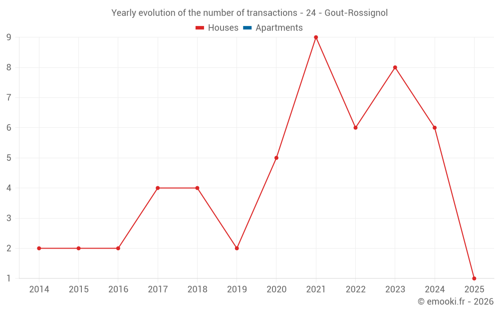 Real estate price map in the municipality of Gout-Rossignol, choose a section to see transactions by parcel.