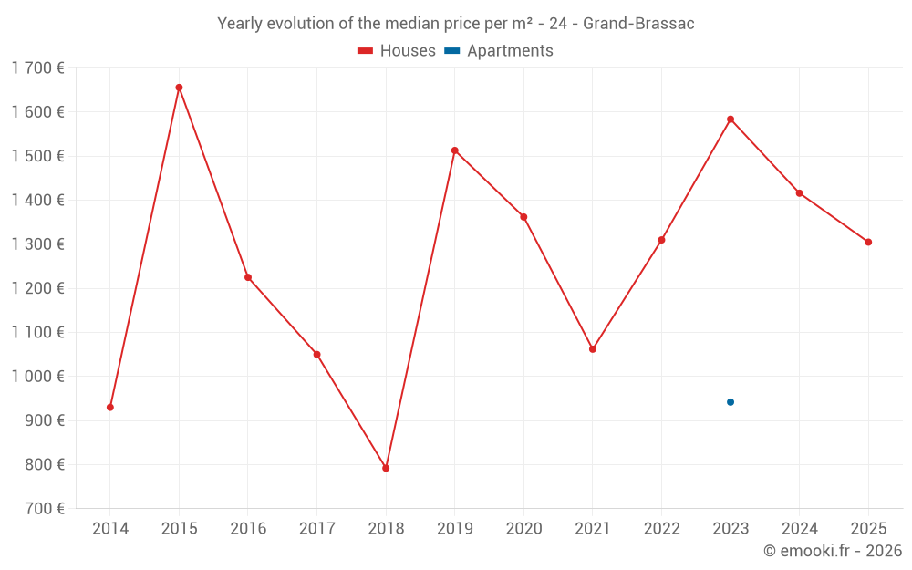 The price per m² of houses has increased by 65% since 7 years, but it has decreased by 21% in 10 years.