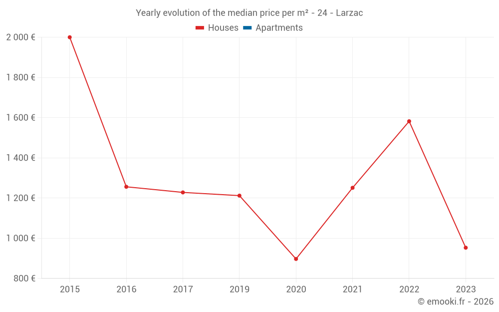 Evolution of the median price per m² of houses