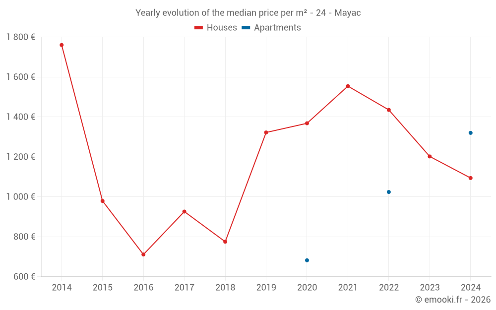 Real estate price map in the municipality of Mayac, choose a section to see transactions by parcel.