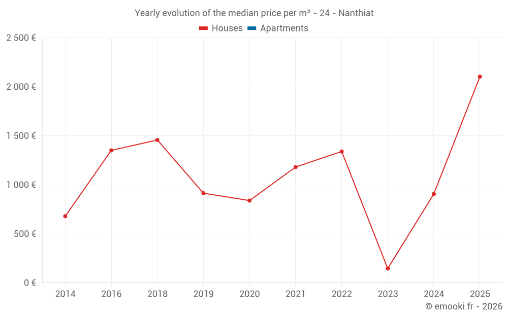 Evolution of the median price per m² of houses