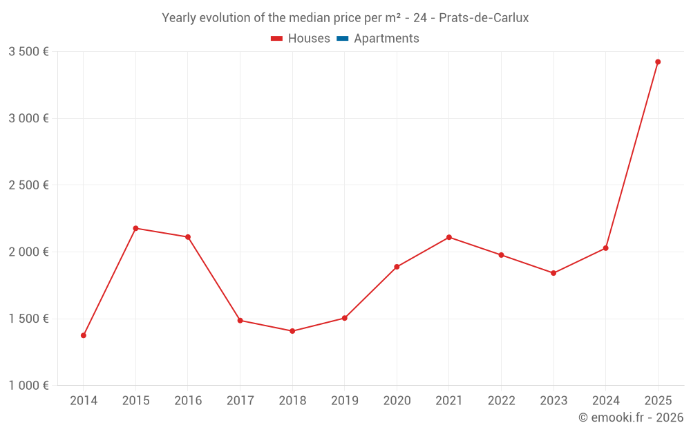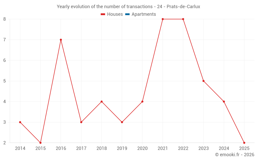 Real estate price map in the municipality of Prats-de-Carlux, choose a section to see transactions by parcel.