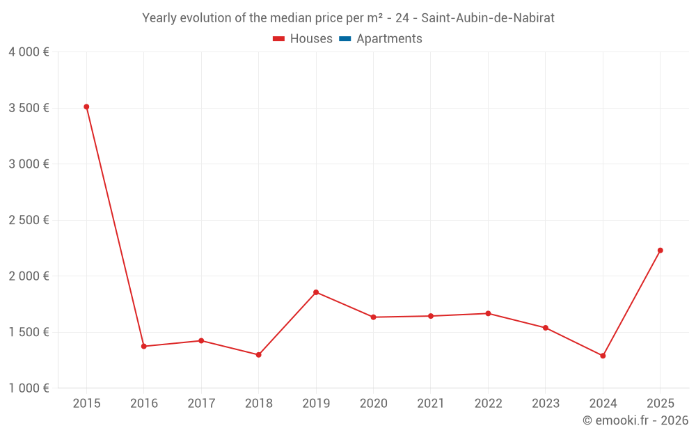 Evolution of the median price per m² of houses
