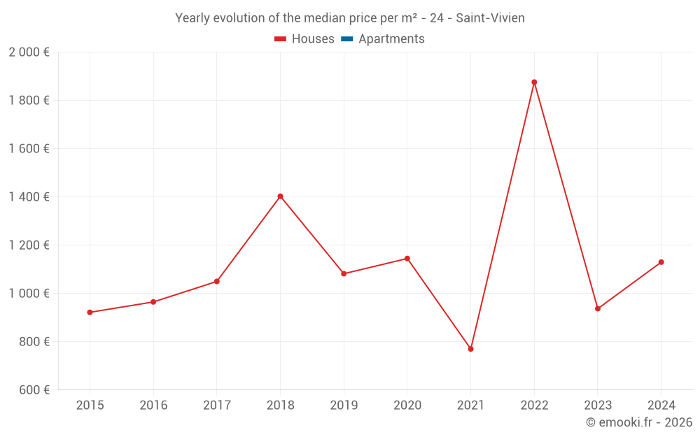 Evolution of the median price per m² of houses