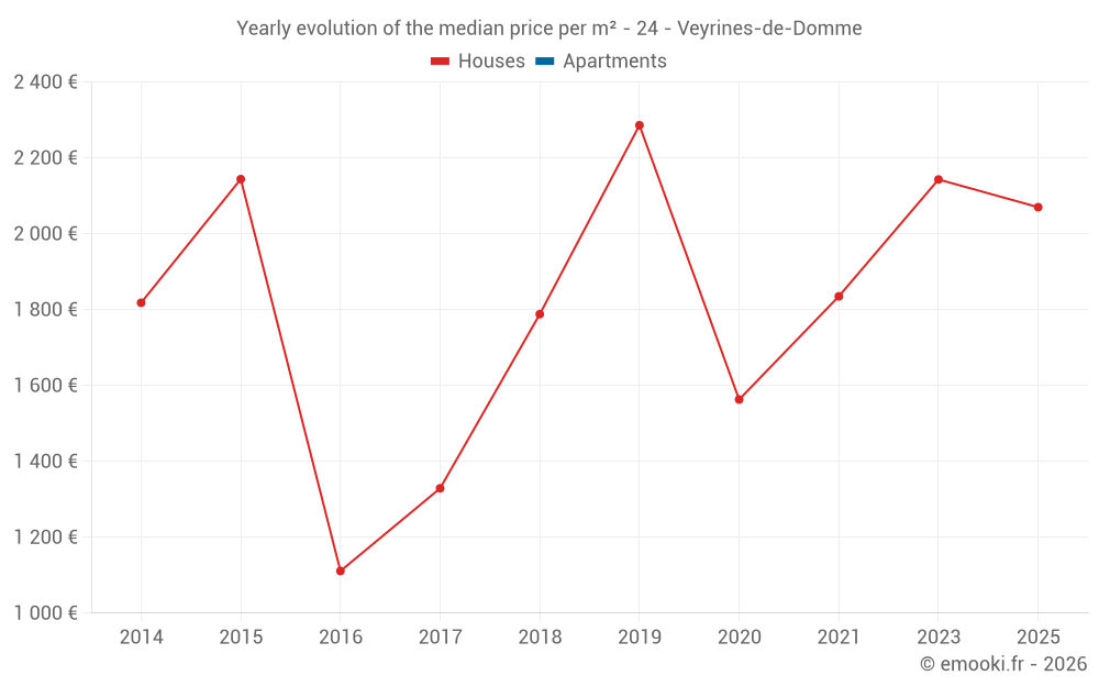 Real estate price map in the municipality of Veyrines-de-Domme, choose a section to see transactions by parcel.