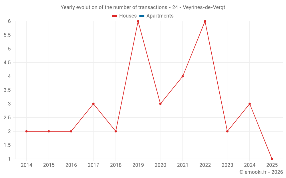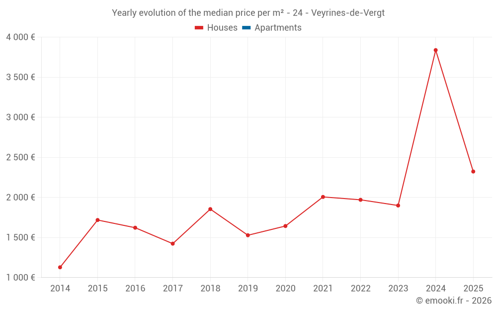 Real estate price map in the municipality of Veyrines-de-Vergt, choose a section to see transactions by parcel.