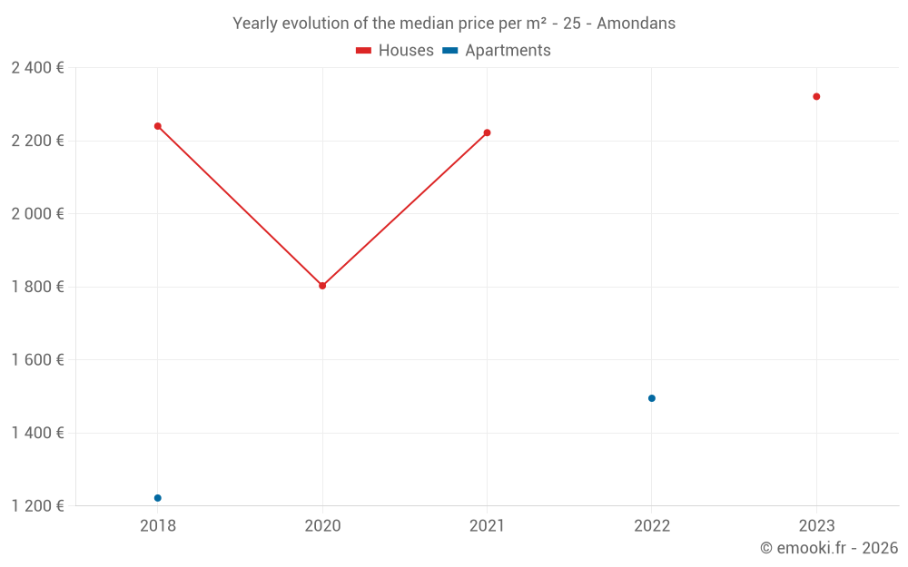 Real estate price map in the municipality of Amondans, choose a section to see transactions by parcel.