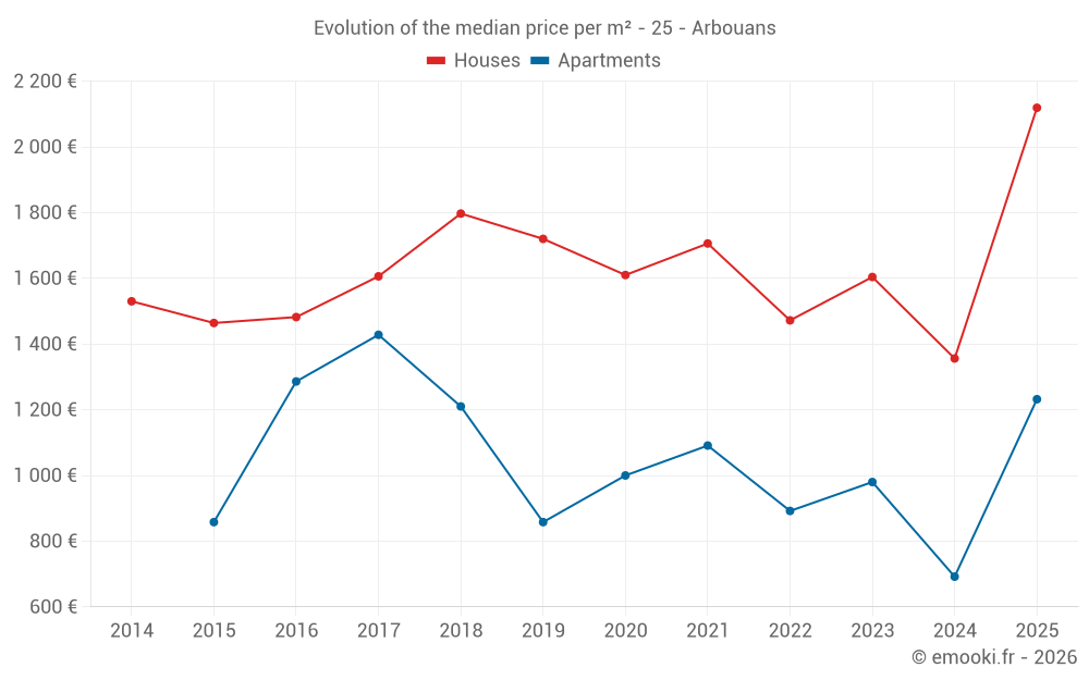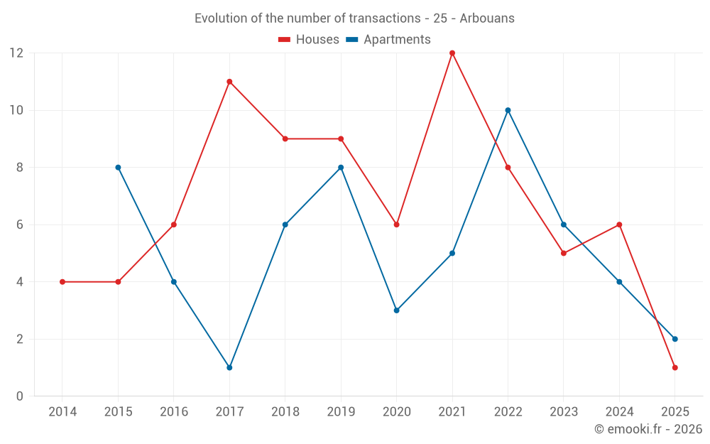 Real estate price map in the municipality of Arbouans, choose a section to see transactions by parcel.