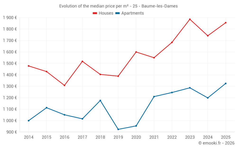 Median price on the 26 transactions of the last 12 months.