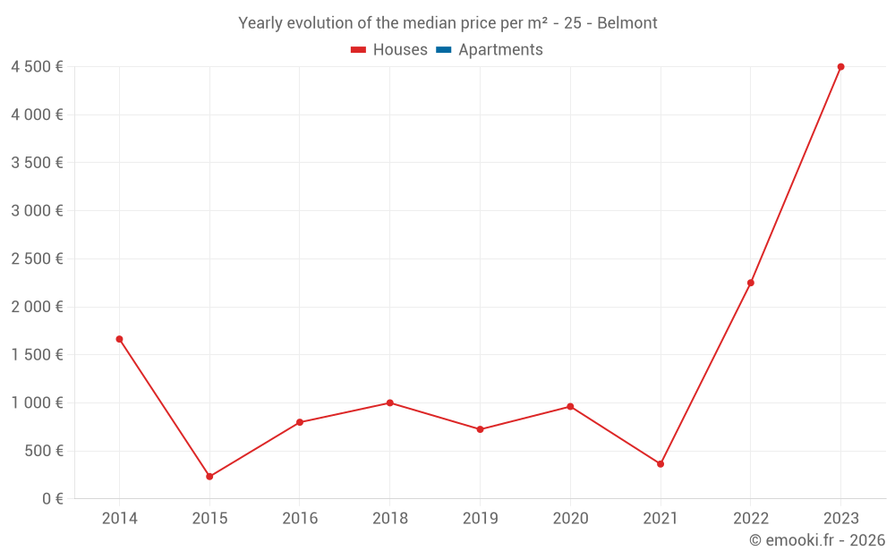 Evolution of the median price per m² of houses