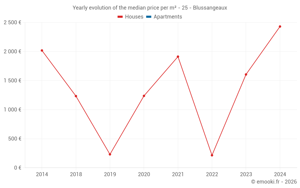 Real estate price map in the municipality of Blussangeaux, choose a section to see transactions by parcel.