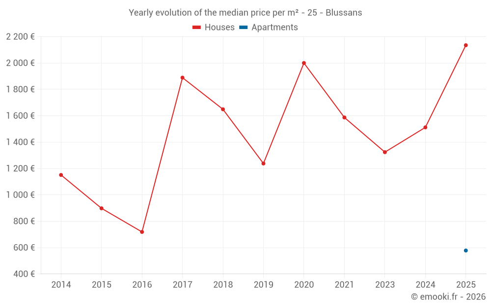 Real estate price map in the municipality of Blussans, choose a section to see transactions by parcel.