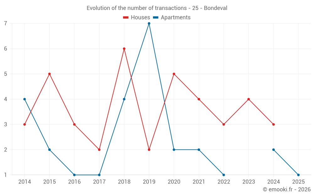 Real estate price map in the municipality of Bondeval, choose a section to see transactions by parcel.
