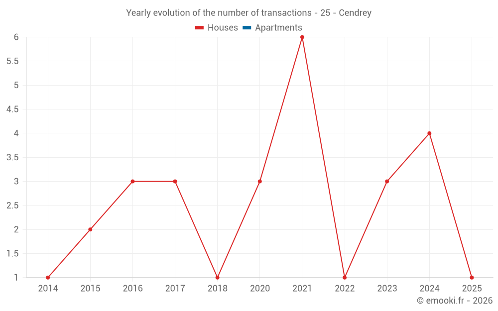 Real estate price map in the municipality of Cendrey, choose a section to see transactions by parcel.