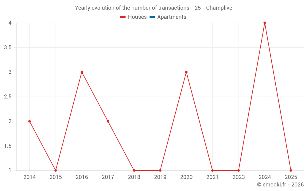 Real estate price map in the municipality of Champlive, choose a section to see transactions by parcel.
