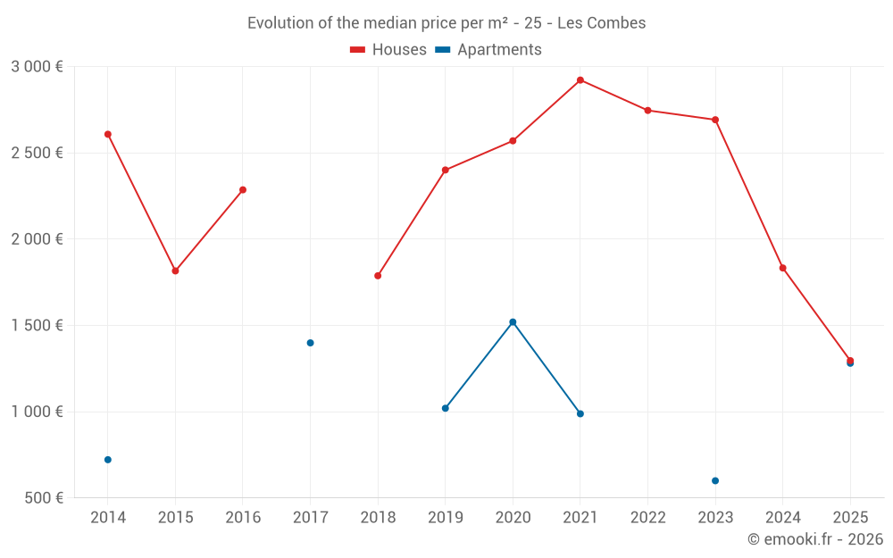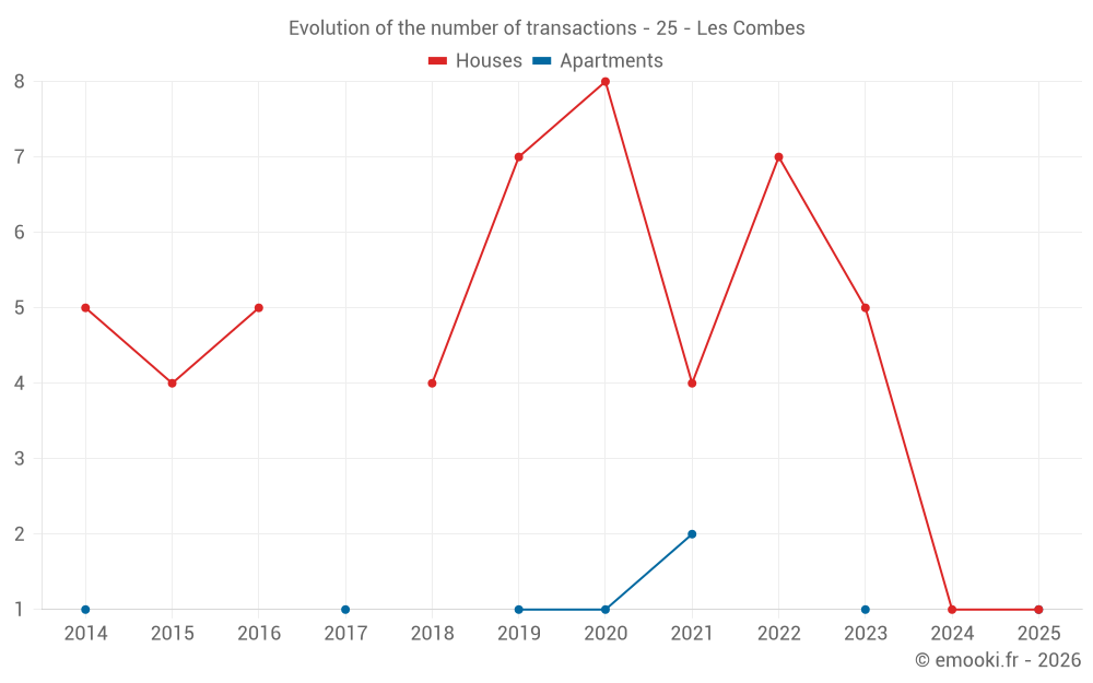 Real estate price map in the municipality of Les Combes, choose a section to see transactions by parcel.