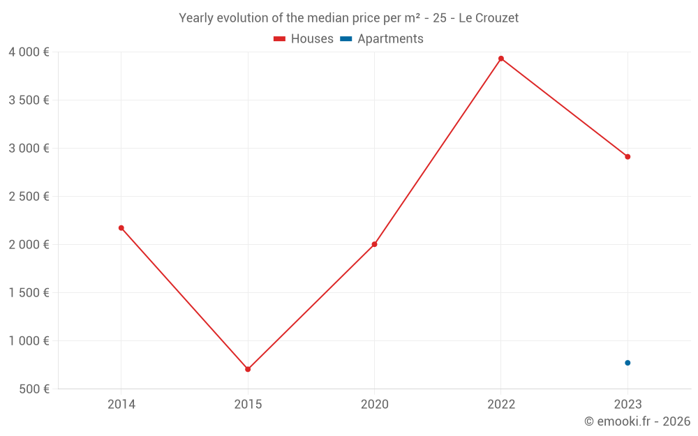 Real estate price map in the municipality of Le Crouzet, choose a section to see transactions by parcel.
