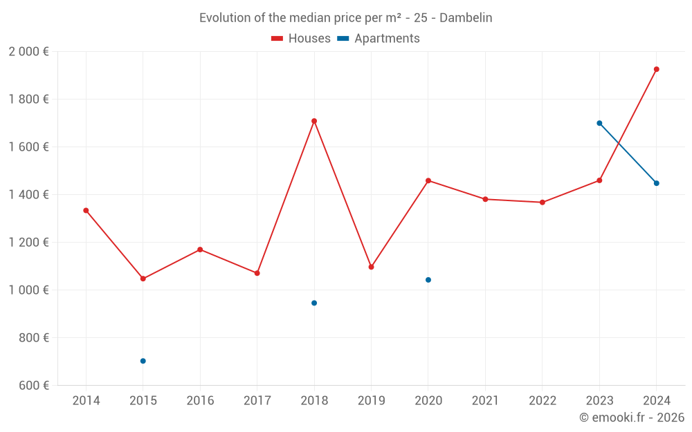 Real estate price map in the municipality of Dambelin, choose a section to see transactions by parcel.