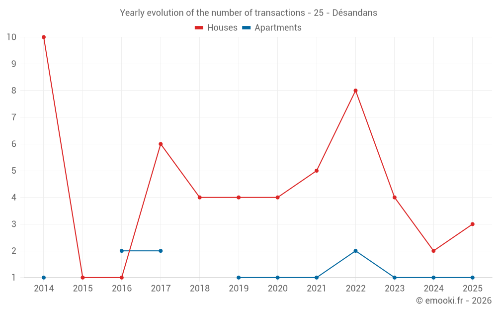 Real estate price map in the municipality of Désandans, choose a section to see transactions by parcel.