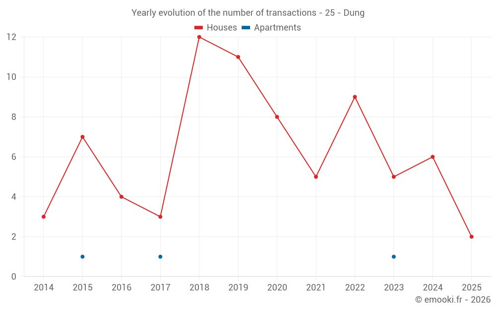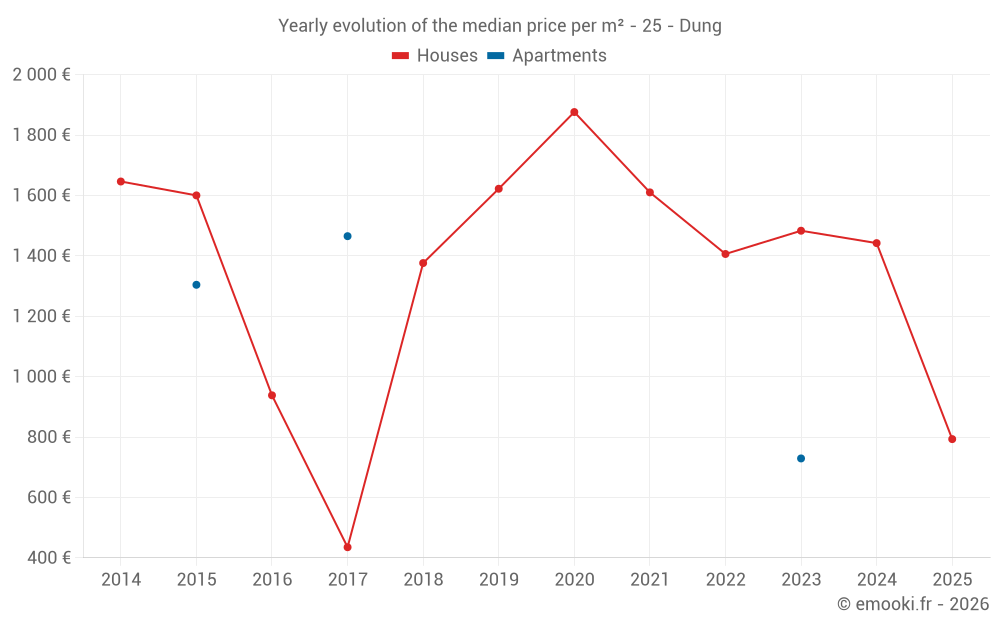 Real estate price map in the municipality of Dung, choose a section to see transactions by parcel.
