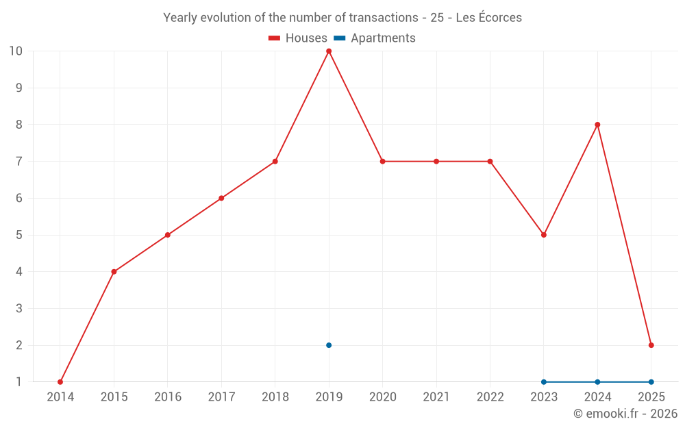 Real estate price map in the municipality of Les Écorces, choose a section to see transactions by parcel.