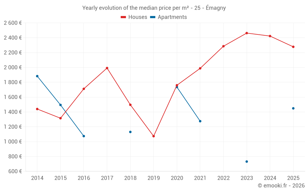 Real estate price map in the municipality of Émagny, choose a section to see transactions by parcel.