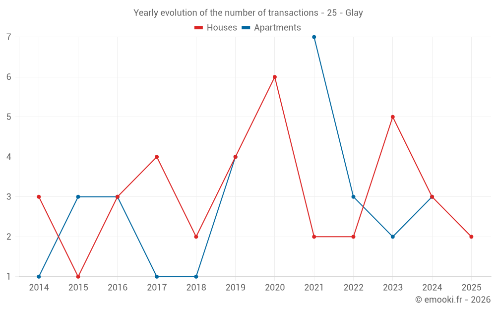 Real estate price map in the municipality of Glay, choose a section to see transactions by parcel.